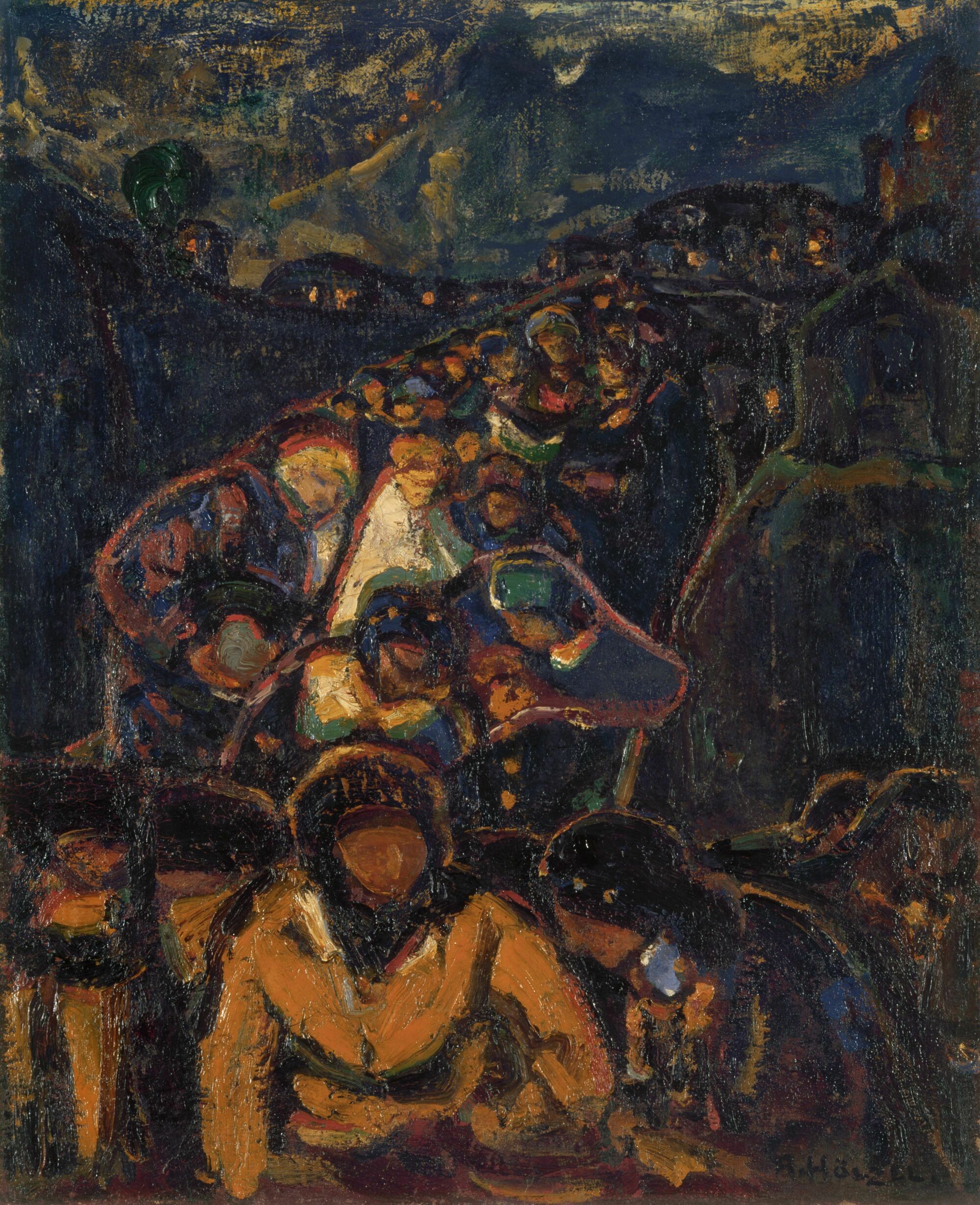 Abbildung: Adolf Hölzel, Prozession im Gebirge, 1909/10, Detail. Erben nach Ernst und Gertrud Flersheim. Foto: Museum Wiesbaden / Bernd Fickert