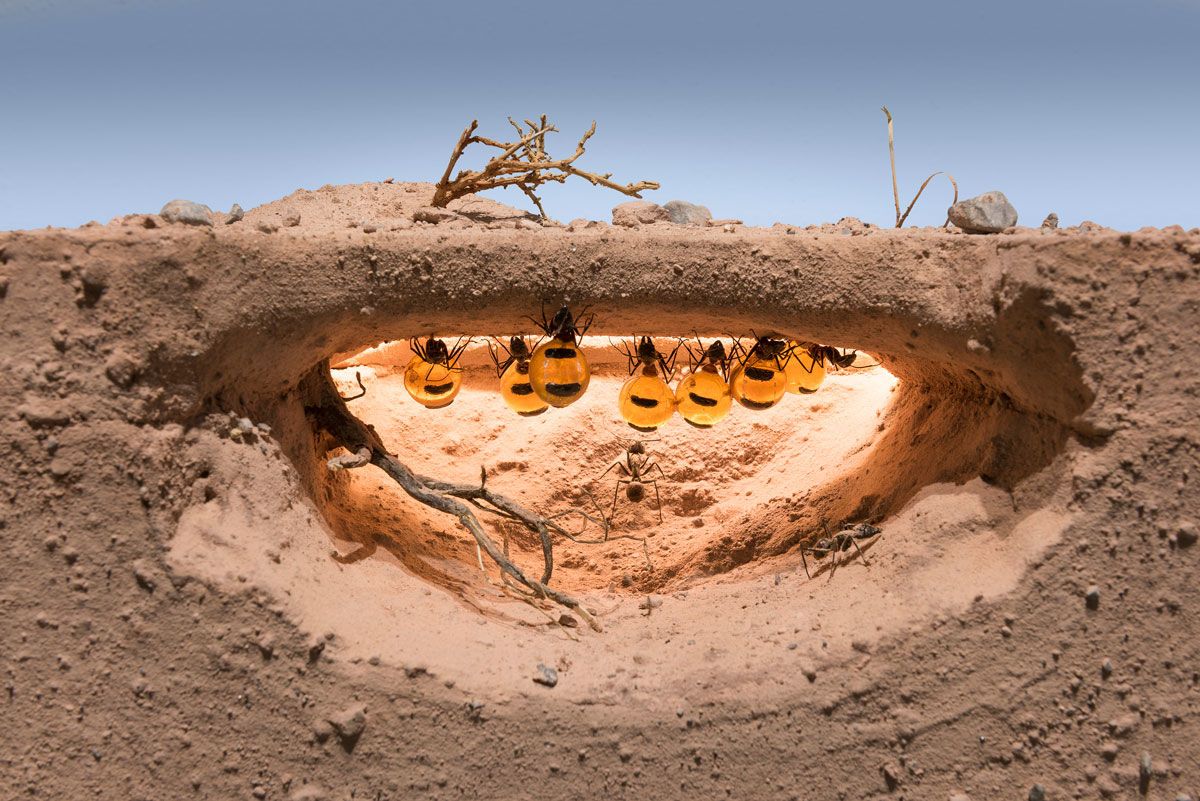 Honeypot ants in the exhibit. Photo: Museum Wiesbaden / Bernd Fickert