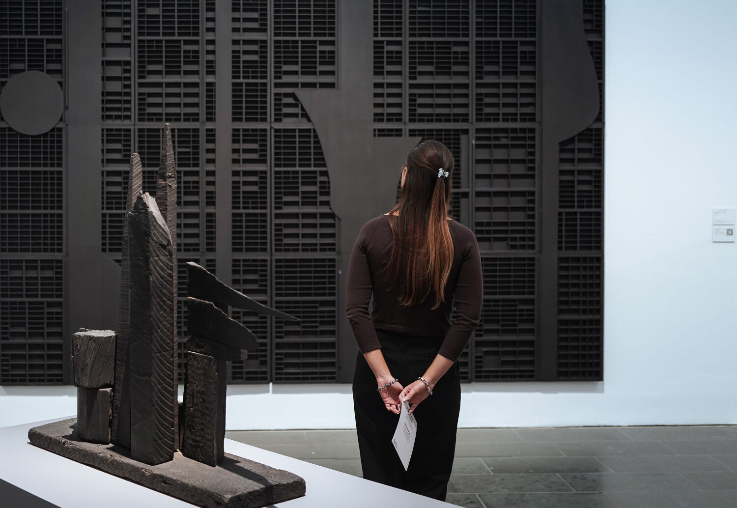 Die Collagen stehen im Dialog mit ihren großformatigen Assemblagen und Wandreliefs. Gemeinsam eröffnen sie neue Perspektiven auf Raum, Form und Materialität. Erleben Sie, wie Louise Nevelson aus Fundstücken poetische Kunstwerke schuf — lebendige Bilder voller Kraft und Feinfühligkeit. Tauchen Sie ein in die „Poesie des Suchens“ und entdecken Sie das Wertvolle im Gewöhnlichen neu!