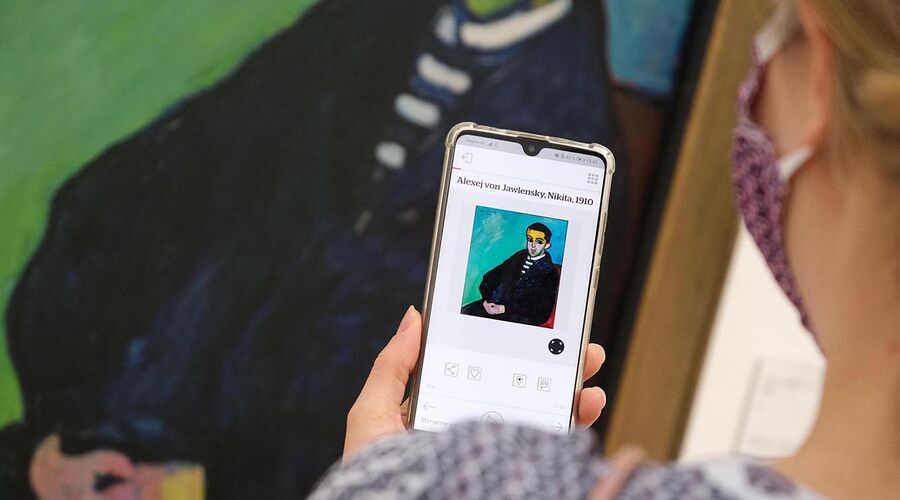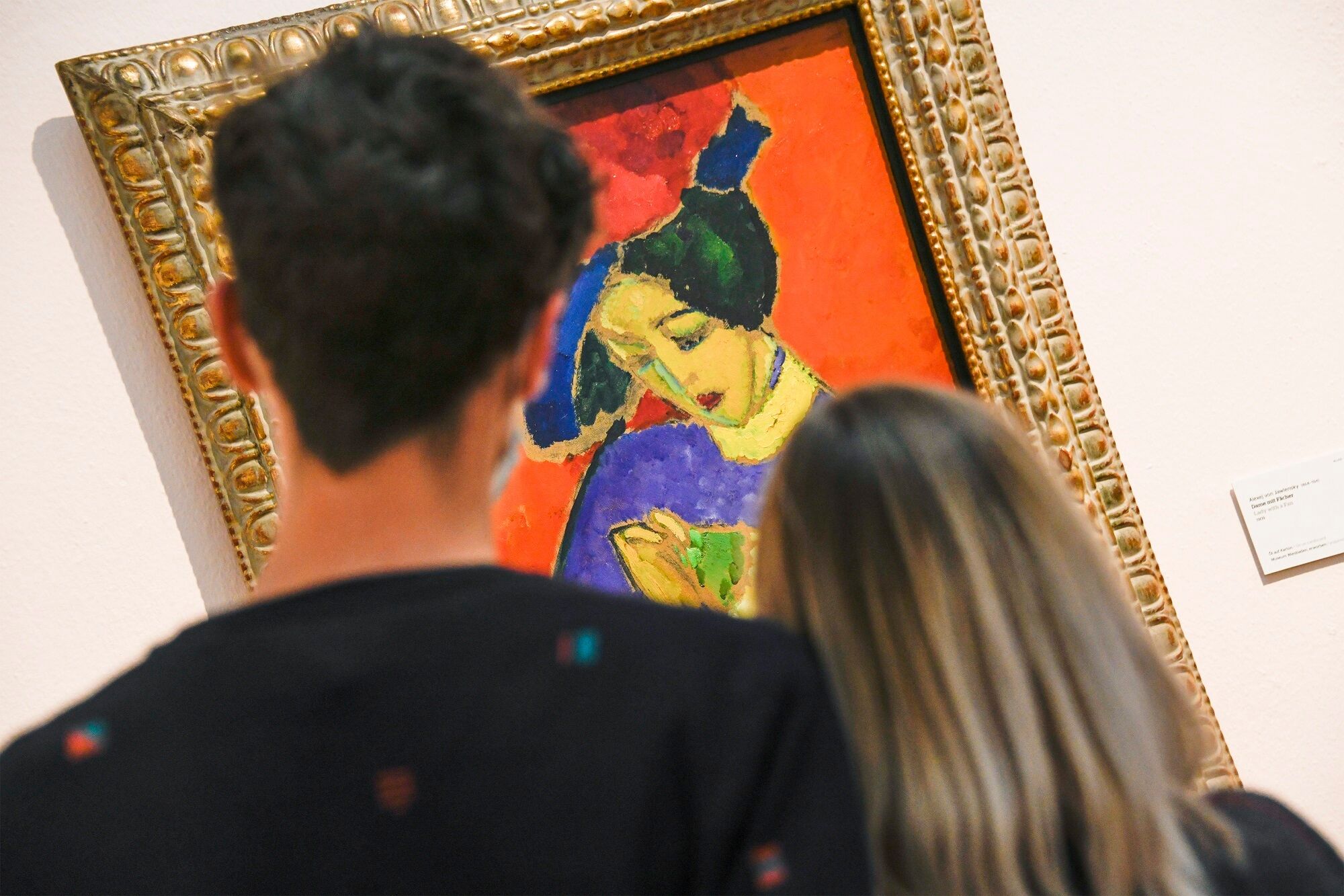 Gäste vor Alexej von Jawlenskys "Dame mit Fächer". Foto: Museum Wiesbaden  / Bernd Fickert