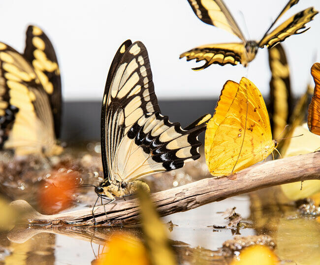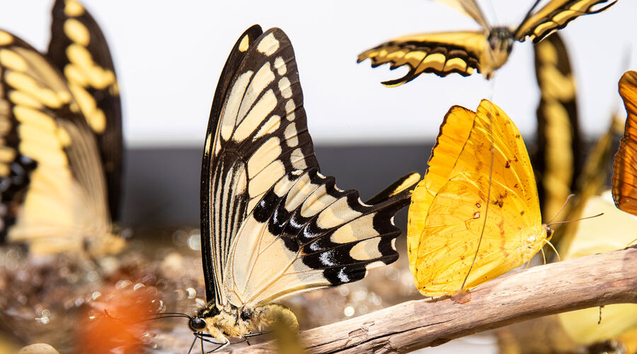 Detail eines Dioramas mit Schmetterlingen. Foto: Museum Wiesbaden  / Bernd Fickert