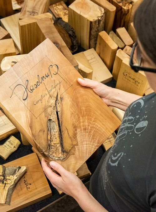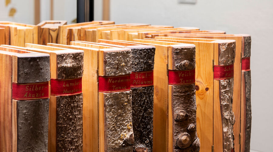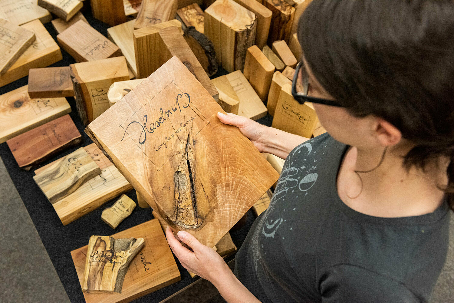 Gast in der Studienausstellung "Bibliothek der Bäume". Foto: Museum Wiesbaden  / Bernd Fickert