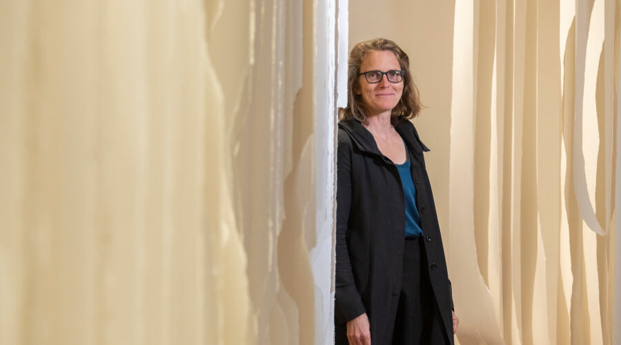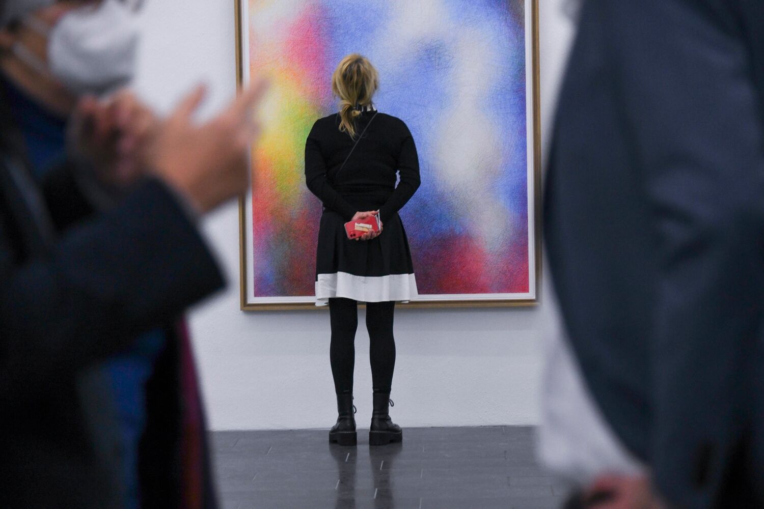 Besucherin in der Schau "Präzision und Unschärfe". Foto: Museum Wiesbaden  / Bernd Fickert