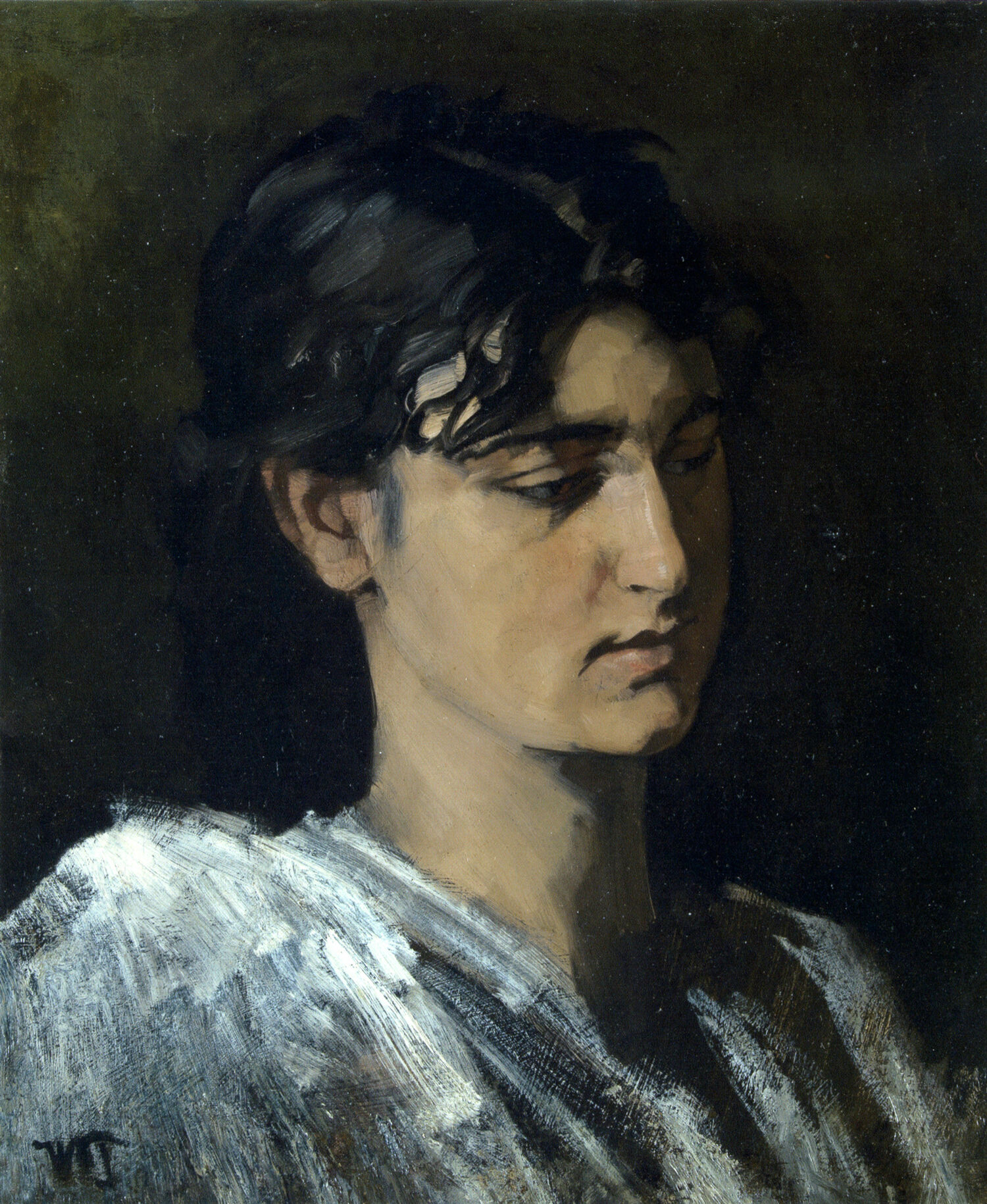 Wilhelm Trübner, Unbekannte Dame nach rechts, 1882. Schenkung Sammlung J. und F. Baechle. Foto: Museum Wiesbaden / Bernd Fickert