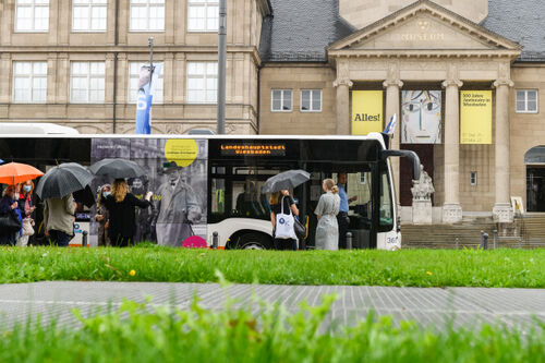 Jawlensky-Bus am Tag der Pressekonferenz von "Alles! 100 Jahre Jawlensky in Wiesbaden". Foto: Museum Wiesbaden  / Bernd Fickert