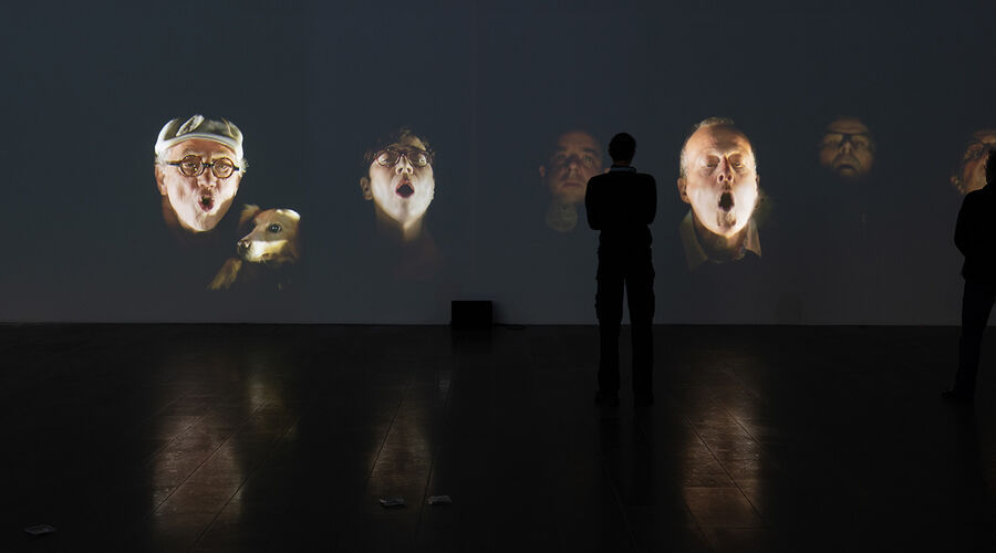 Gäste beim Besuch der Ausstellung "Temporary Ground". Foto: Museum Wiesbaden  / Bernd Fickert