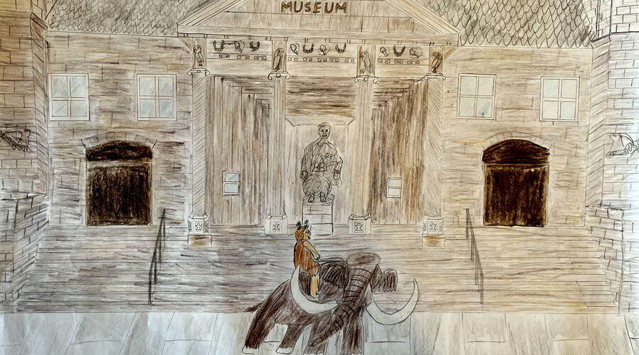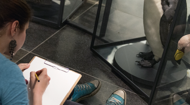 Jugendliche Besucherin hält ihre Eindrücke in der Dauerausstellung "Ästhetik der Natur" fest. Foto: Museum Wiesbaden / Bernd Fickert