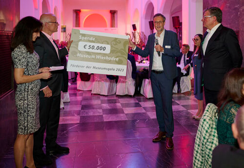 »Wir sagen DANKE für dieses lebendige Jahr. Ein Jahr, in dem wir viel mit Ihnen feiern konnten, viel erleben durften, aber auch vieles ermöglicht wurde dank Ihrer Unterstützung. Zum einen durch den Verein der Freunde des Museums Wiesbaden: allen Mitgliedern, dem Vorstand, Kuratorium ein herzlicher Dank im Namen des gesamten Museumsteams. Allen Mäzenen, die uns unterstützt haben, ebenso einen aufrichtigen Dank. Wir sind froh und dankbar, dass wir mit Ihrer Unterstützung gezielt unsere Sammlungen erweitern können. Und wir danken allen Sponsoren, Förderern, Unterstützern, die uns die Vermittlungsarbeit, Programme, Sonderveranstaltungen, Sonderausstellungen, Publikationen überhaupt erst ermöglicht haben. Ihnen allen von Herzen meinen Dank, insbesondere auch unseren drei langjährigen Sammlungspartnern. Durch Sie alle ist das Museum Wiesbaden ein lebendiger Ort und ich hoffe, wir sehen uns häufig und fröhlich immer wieder in diesem Haus.«