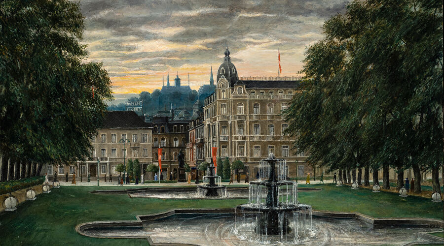 Karl Otto Hy, Hotel Vierjahreszeiten / Nassauer Hof, 1937. Wolff Mirus, Hallgarten Rheingau. Foto: Museum Wiesbaden ⁄ Bernd Fickert