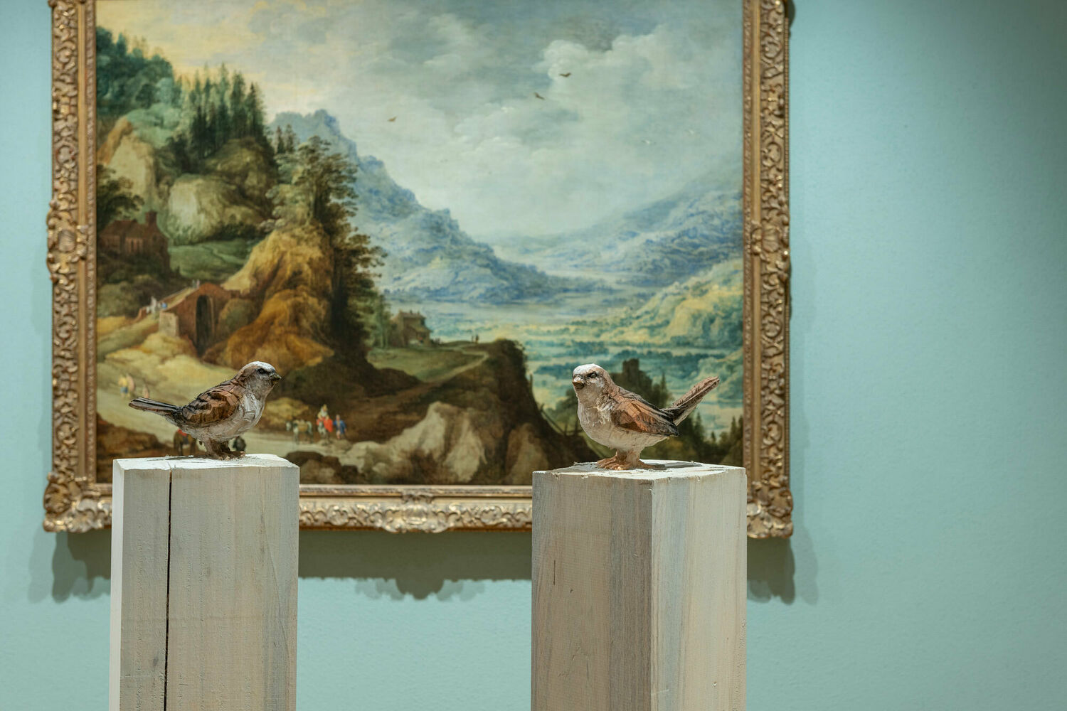 Ausstellungsansicht "Zeitfenster - Stephan Balkenhol trifft Alte Meister". © VG Bild- Kunst, Bonn 2024. Foto: Museum Wiesbaden / Bernd Fickert