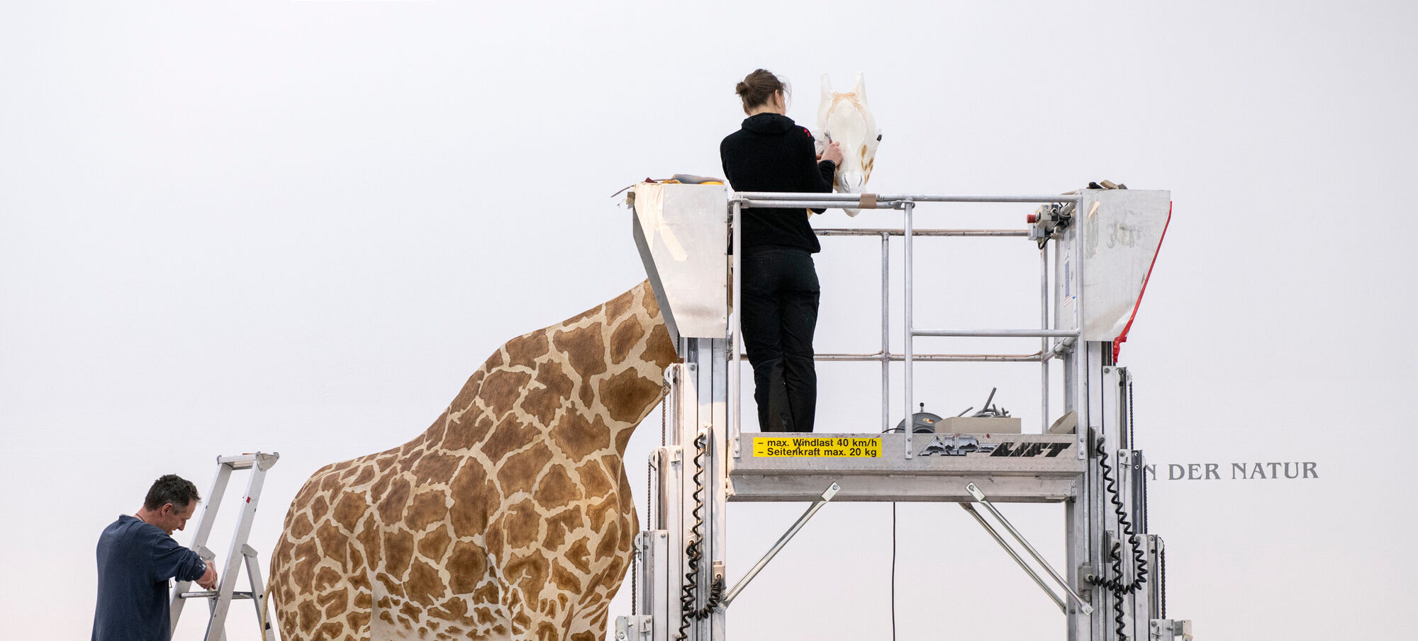 Aufbau des Giraffenmodells, Foto: Museum Wiesbaden / Bernd Fickert
