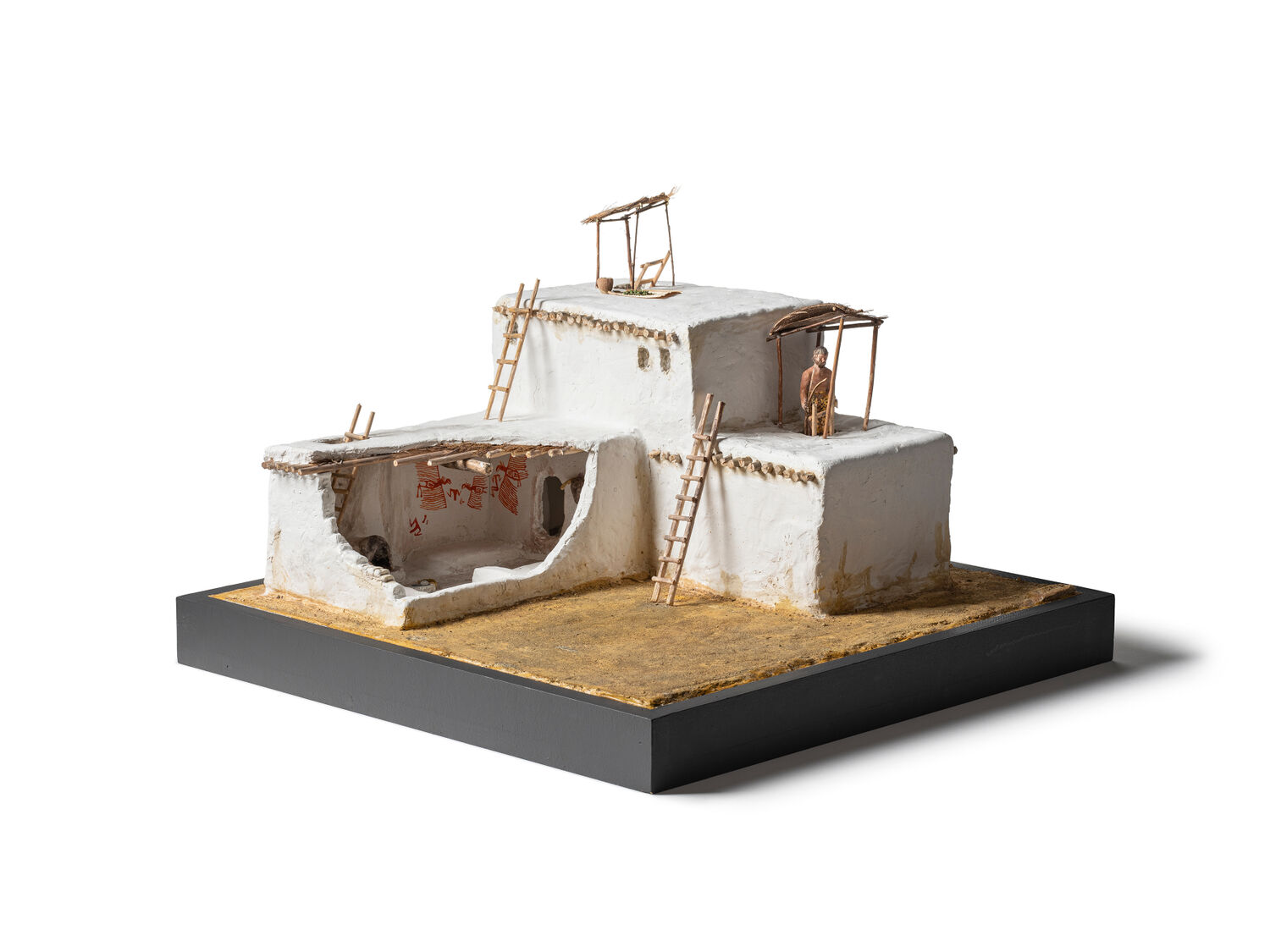 Für die Ausstellung „Leben aus Lehm“ baute Werner Hammer dieses Modell eines aus getrockneten Lehmziegeln errichteten Hauses einer der ältesten Städte der Welt. Das jungsteinzeitliche Catalhöyük liegt in der heutigen Türkei. Die Stadt wird auf den Zeitraum zwischen 7500 und 5700 v. Chr. und ihrer Blütezeit um 7000 v. Chr. datiert. Die Ansiedlung hatte mehrere tausend Einwohner.