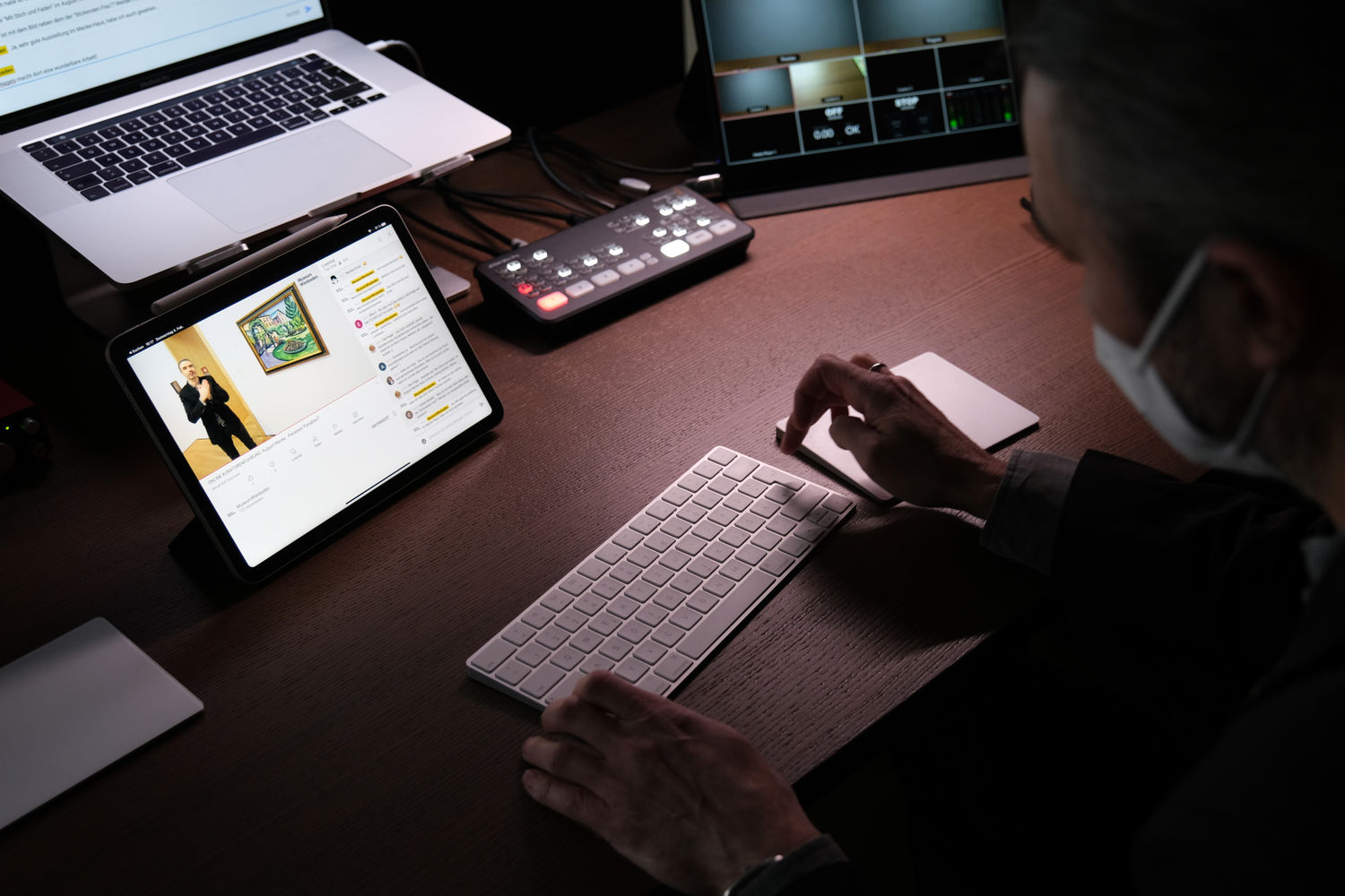 Ein paar Tage vorher werden also Überraschungspakete für die Teilnehmerinnen und Teilnehmer des Anschlussevents gepackt und dann ist es auch schon so weit: Ein letzter Sound- und Technik-Check am Nachmittag und es kann losgehen.