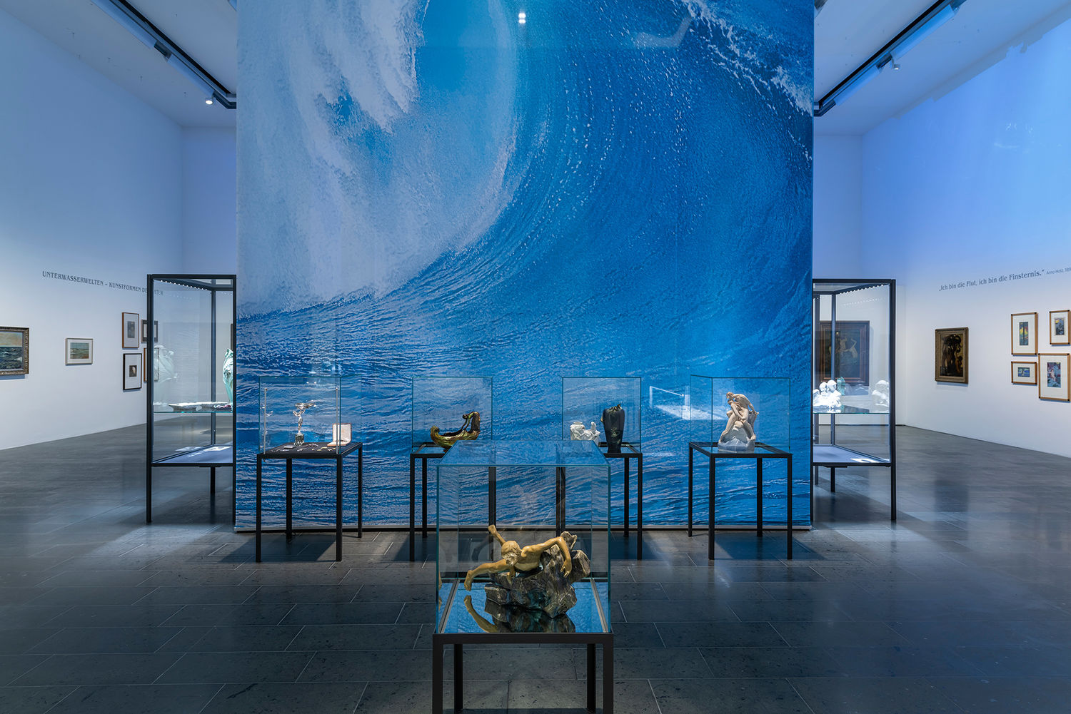 Wasser als Vexiermetapher zwischen symbolischem Heilmittel und zerstörerischer Urkraft ist in der Kunst des beginnenden 20. Jahrhunderts wie in kaum einer anderen Zeit derart gegenwärtig. Geboren aus der Dynamik der Natur, forderte der Jugendstil zu Anfang des 20. Jahrhunderts revolutionär eine genuin moderne und ihrer Zeit angemessene Kunst und fand diese in der Symbolik des Wassers. (Be)rauschende Wellen, mythologische Erzählungen des Ozeans oder die Abbildung nautischer Lebewesen wie Fische, Quallen und Muscheln, stellen Wasser als Sehnsuchtsort gattungsübergreifend von der Malerei bis in die Keramik dar. Es ist die künstliche Schaffung eines Imaginationsraums, der einerseits die tiefen Sehnsüchte und Träume der Menschen bediente und andererseits als geheimnisvolle Parallelwelt schaudern ließ.